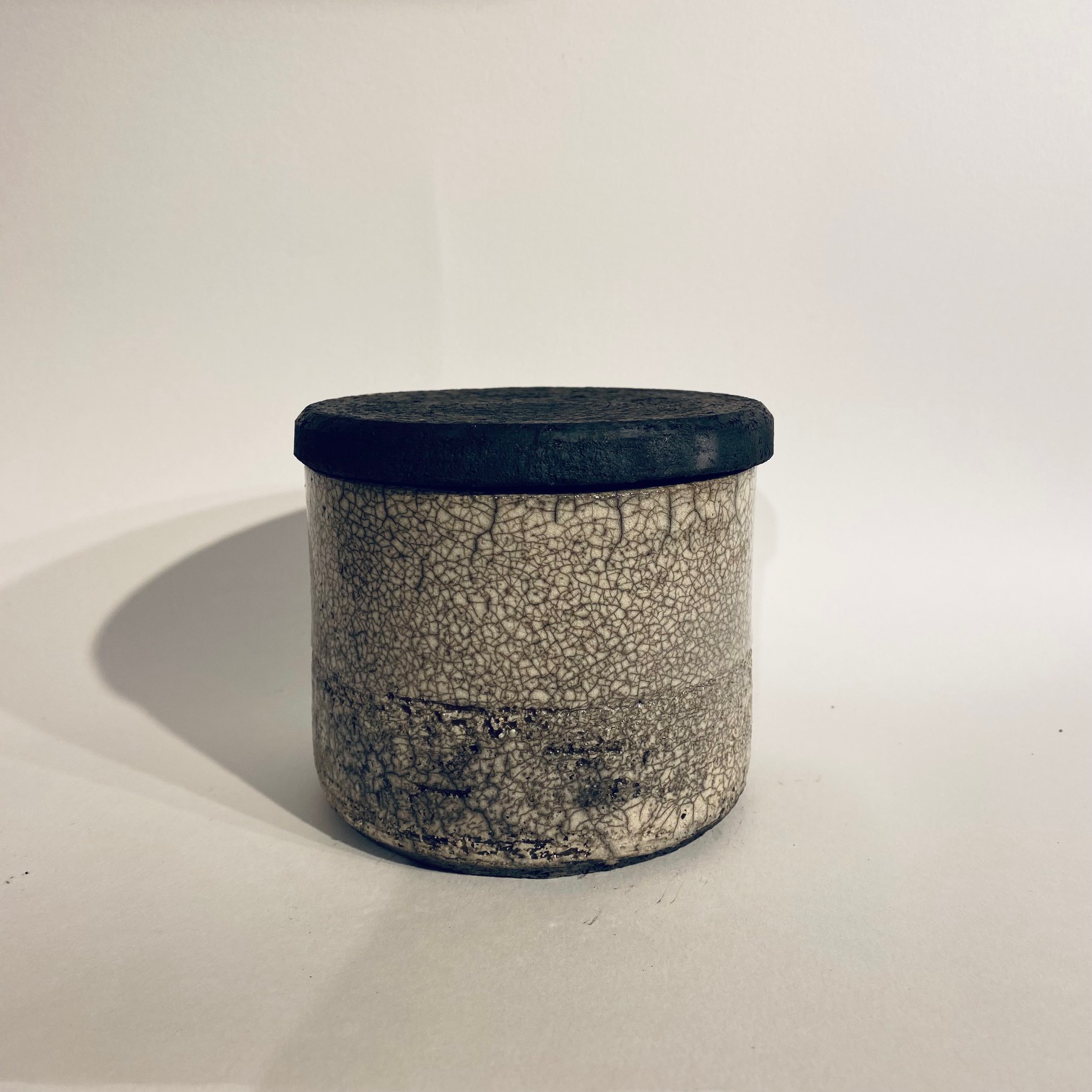 Hand thrown and raku fired ceramic tumbler with lid. Some are partially glazed and left raw on inside & the bottom.