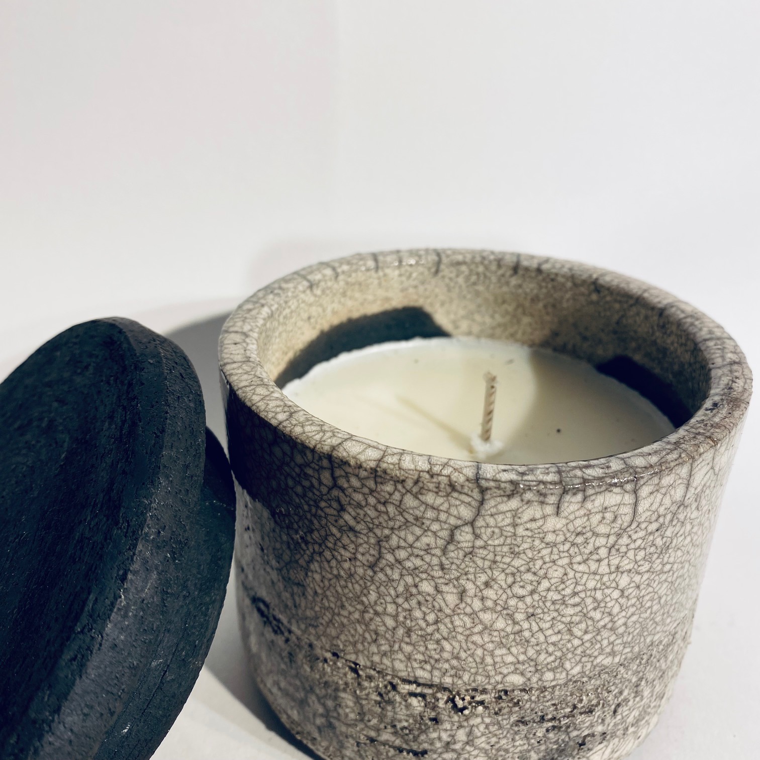 Once your candle has burnt away, use hot soapy water to melt away the last remnants of soy wax. Discard the wick. Now you are left with a new raku ceramic tumbler, which can be used for a plant, jewellry or chocolate.